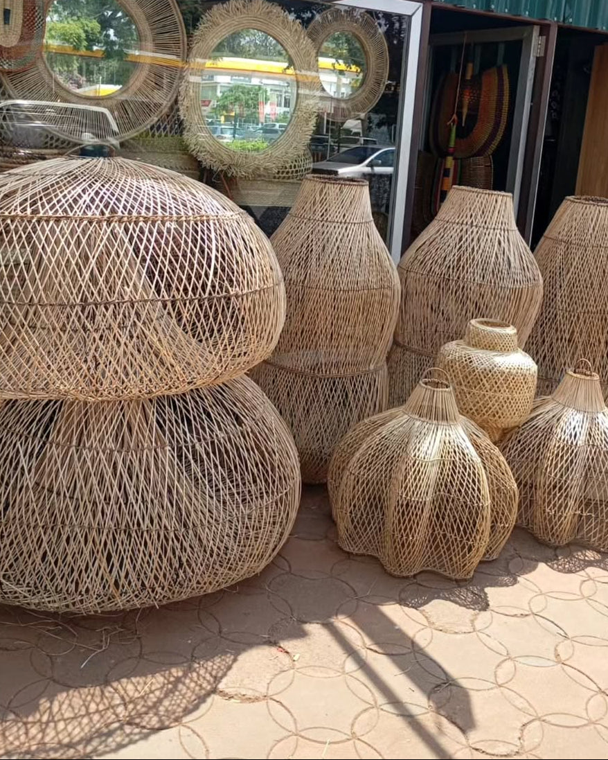 Crafted by women’s cooperatives in Narok and Nyeri, Kenya, the baskets and wall décor are shaped from sisal, baobab fiber, and raffia. The bulbous forms reflect traditional water carriers and ritual urns, while the circular mirrors symbolize clarity, memory, and spiritual presence. Each weave carries intention, each reflection holds story.