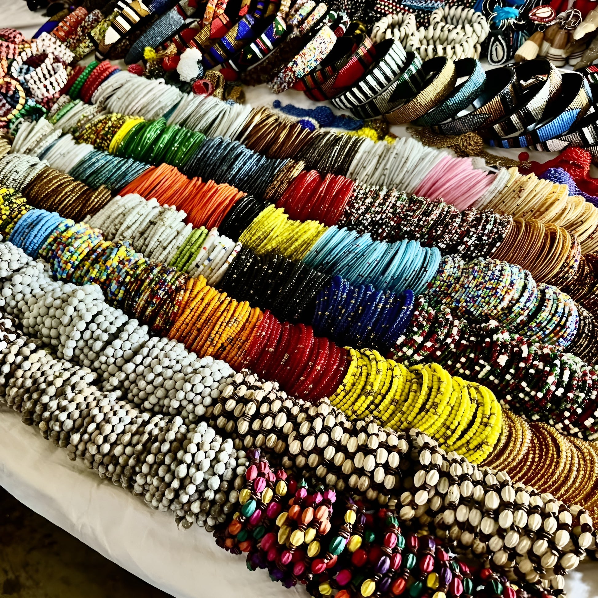 Made from recycled glass beads and durable thread, this necklace is both eco-conscious and enduring. Whether worn as a bold fashion statement or a cherished cultural keepsake, it invites admiration and conversation.
