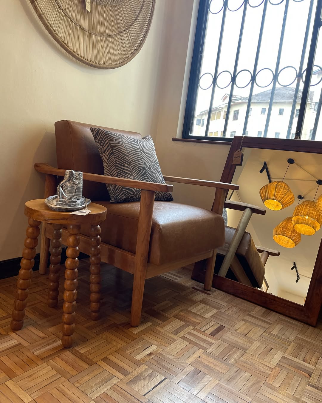 Materials: Wood, Leather, Sisal, Cotton, Glass, Botanical Elements